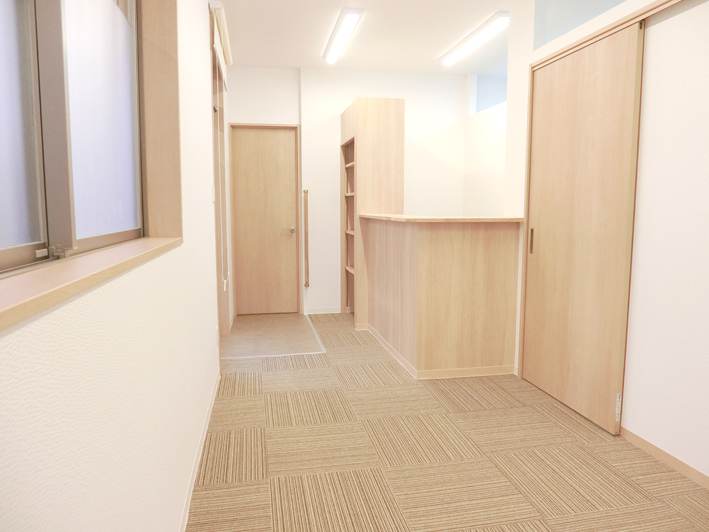 ・造作:間仕切壁、躯体壁、天井造作、室内建具、受付カウンター造作